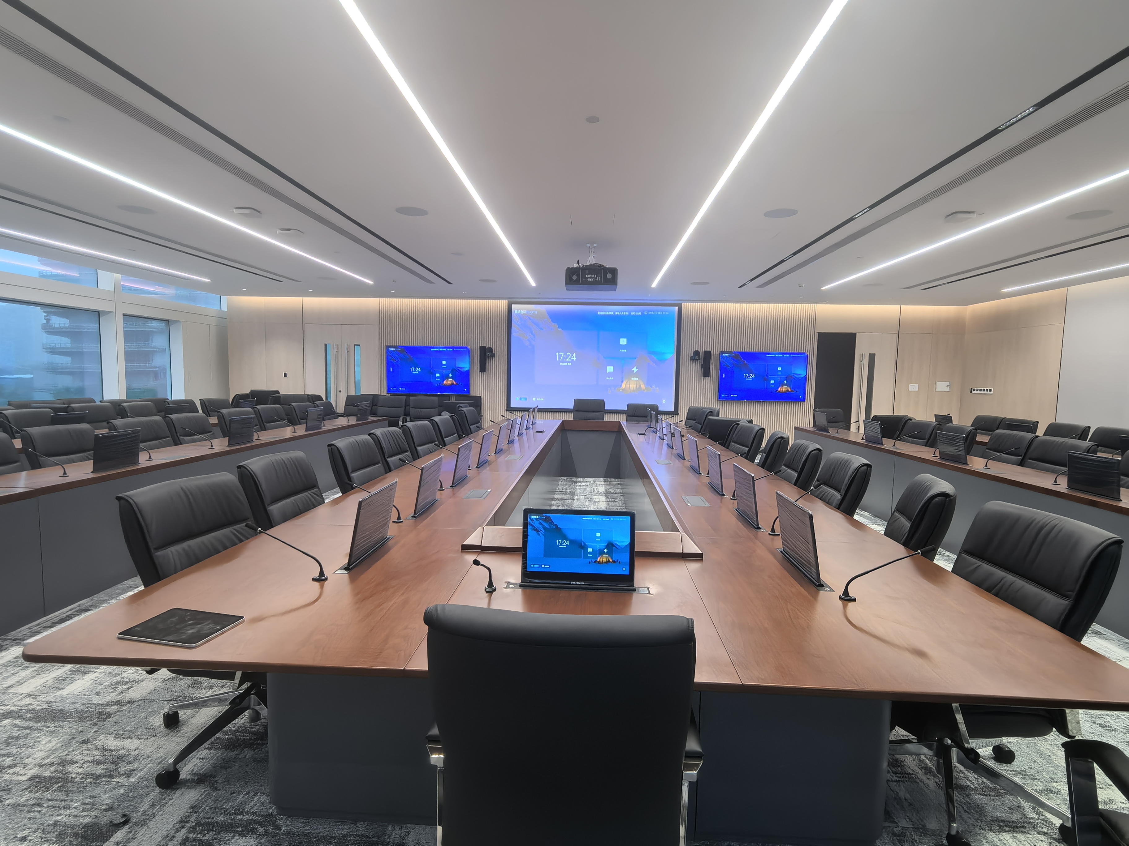 智能會(huì )議生態(tài)融合了4K超清視頻矩陣、AI人臉識別跟蹤、8K全景攝像系統。智能攝像系統自動(dòng)鎖定、平滑追焦,自動(dòng)追蹤。音頻系統的科學(xué)設計實(shí)現各空間語(yǔ)音的精準拾音與降噪,確保會(huì )議中每位成員的發(fā)言都清晰可辨??萍茧[于無(wú)形,卻又無(wú)處不在。